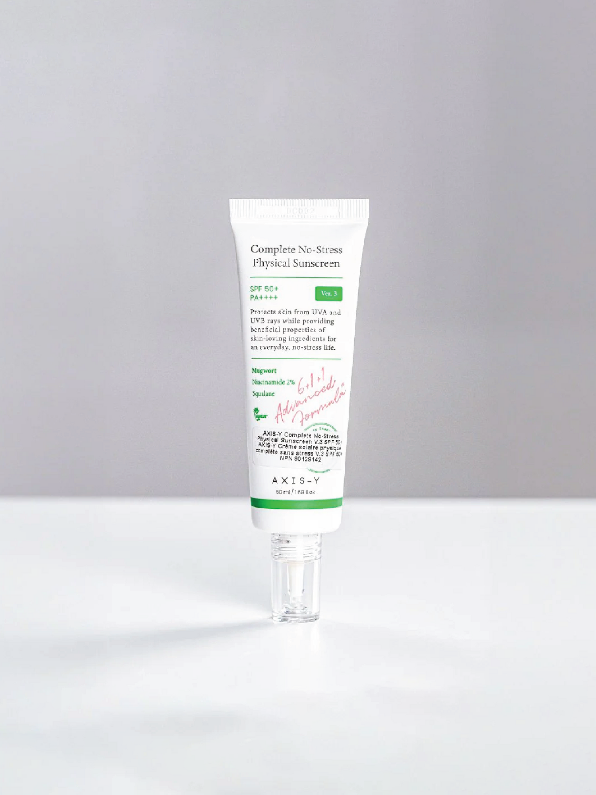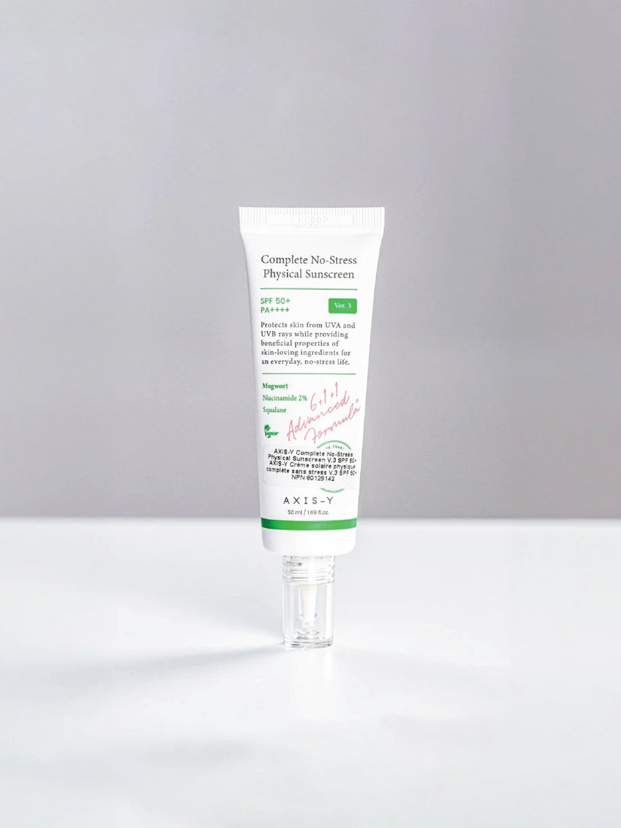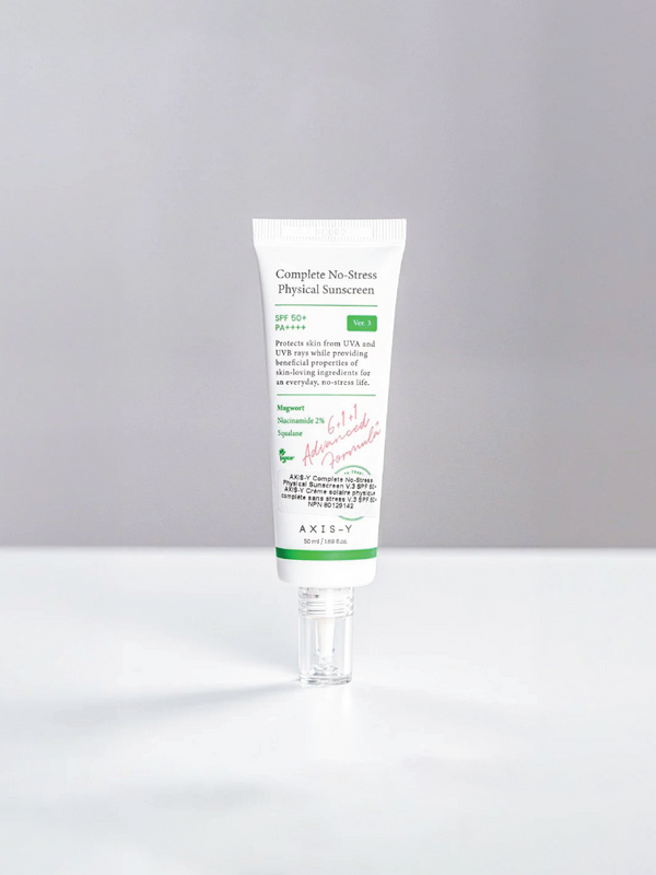 AXIS-Y Complete No-Stress Physical Sunscreen V.3 delivers broad-spectrum SPF 50+ PA++++ protection using reef-safe mineral filters that shield skin without environmental impact. This lightweight formula absorbs rapidly, making it ideal for daily wear across all skin types. Beyond sun defense, it hydrates and soothes with nourishing ingredients, preventing the dryness often associated with physical sunscreens. The advanced formulation ensures comfortable wear under makeup or alone, providing comprehensive UV protection while maintaining skin's natural moisture balance.
