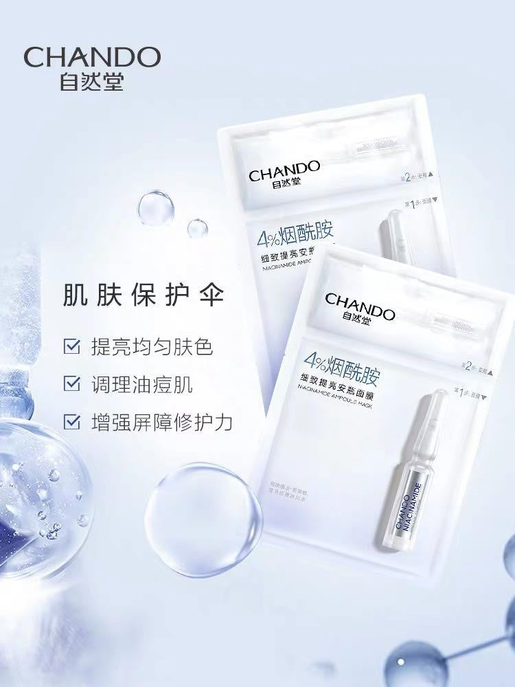 CHANDO Ampoule Mask combines a 33ml large-capacity mask with an independent 1.5ml ampoule of 6.5% yeast essence—specially formulated for fragile and sensitive skin. The proprietary Hime yeast complex delivers repair and strengthening energy, helping restore skin to a balanced, stable state. This dual-action treatment reinforces the epidermal barrier while revitalizing the basal layer, promoting enhanced skin repair ability and resilience.