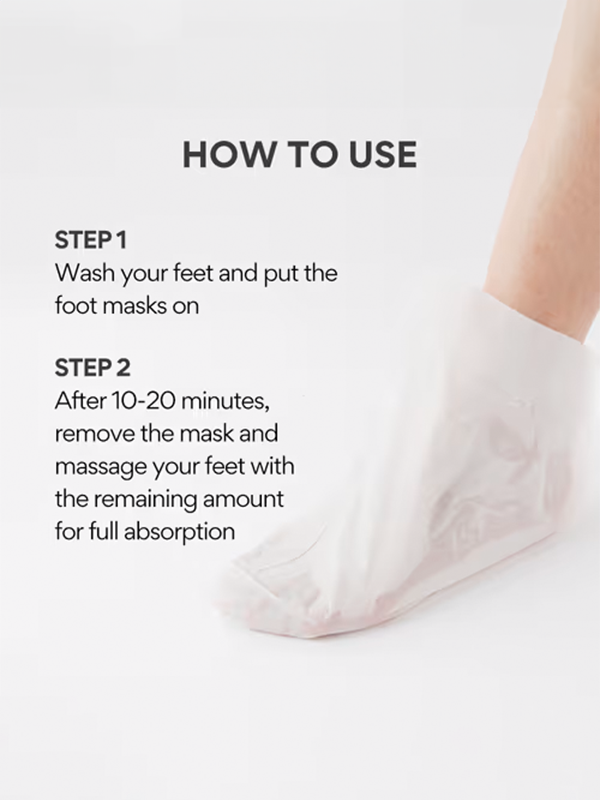 4. After 10-20 minutes, remove the foot mask and gently massage the remaining essence until fully absorbed.