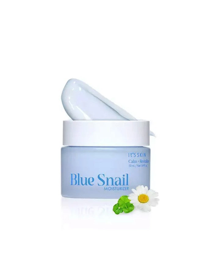 The IT'S SKIN Blue Snail Moisturizer is a fast-absorbing cream designed to soothe and hydrate irritated and sensitized skin, particularly after breakouts. Formulated with 86.24% snail mucin, niacinamide, and guaiazulene, it provides both immediate and long-term hydration for dry and distressed skin.
