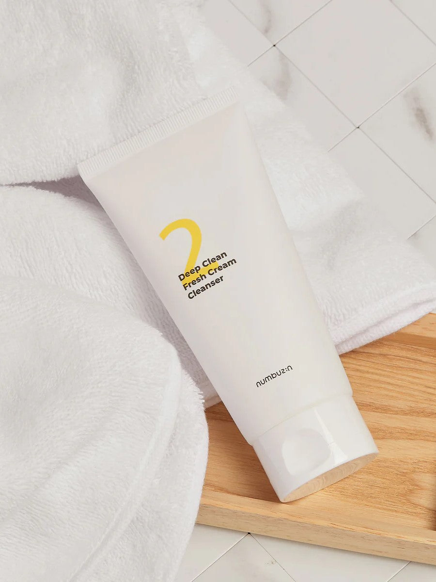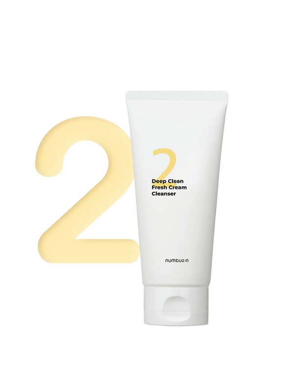 The Numbuzin No.2 Deep Clean Fresh Cream Cleanser offers a gentle yet effective solution for thorough cleansing. Perfect for deep pore purification and makeup removal, this cleanser creates a rich, whipped cream foam that penetrates the skin to remove impurities, excess sebum, and dead skin cells.