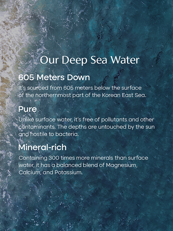 Sea Water(66.01%)($kin-Conditioning Agents - Humectant), Butylene Glycol(Skin-Conditioning Agents), Propanediol (Solvents), Glvcol (Humectants). Water (Solvents)1.2-Hexanediol(Solvents), Caprylic/ Capric Triglyceride (Skin-Conditioning Agents).Hydrolyzed Glycosaminoglycans(Skin-Conditioning Agent - Miscellaneous).Betaine (Humectants), Ectoin (Skin-Conditioning Agents).Tremella Fuciformis (Mushroom) Extract (Skin-Conditioning Agents - Humectant), Tremella Fuciformis Polysaccharide ( Skin-Conditioning Agent - Miscellaneous), Salicornia Herbacea Extract (Skin-Conditioning Agent -Miscellaneous), Laminaria aponica Extract (Skin.conditioning Agents), Caulerpa Lentillifera Extract(Skin-Conditioning Agents). AcetyHexapeptide-8(Skin-Conditioning Agents), Copper Tripeptide-1(Skin-Conditioning Agents), Acrylates/C10-30 Alkyl Acrylate Cross polymer (Viscosity Increasing Agents Agueous), Xanthan gum(Viscosity Increasing Agents).Allantoin(Skin Protectants).Adenosine(Skin-Conditioning Agents),Tromethamine(pH Adjusters). Disodium EDTA (Chelating Agents), Ethylhexylglycerin (Skin-Conditioning Agents)
