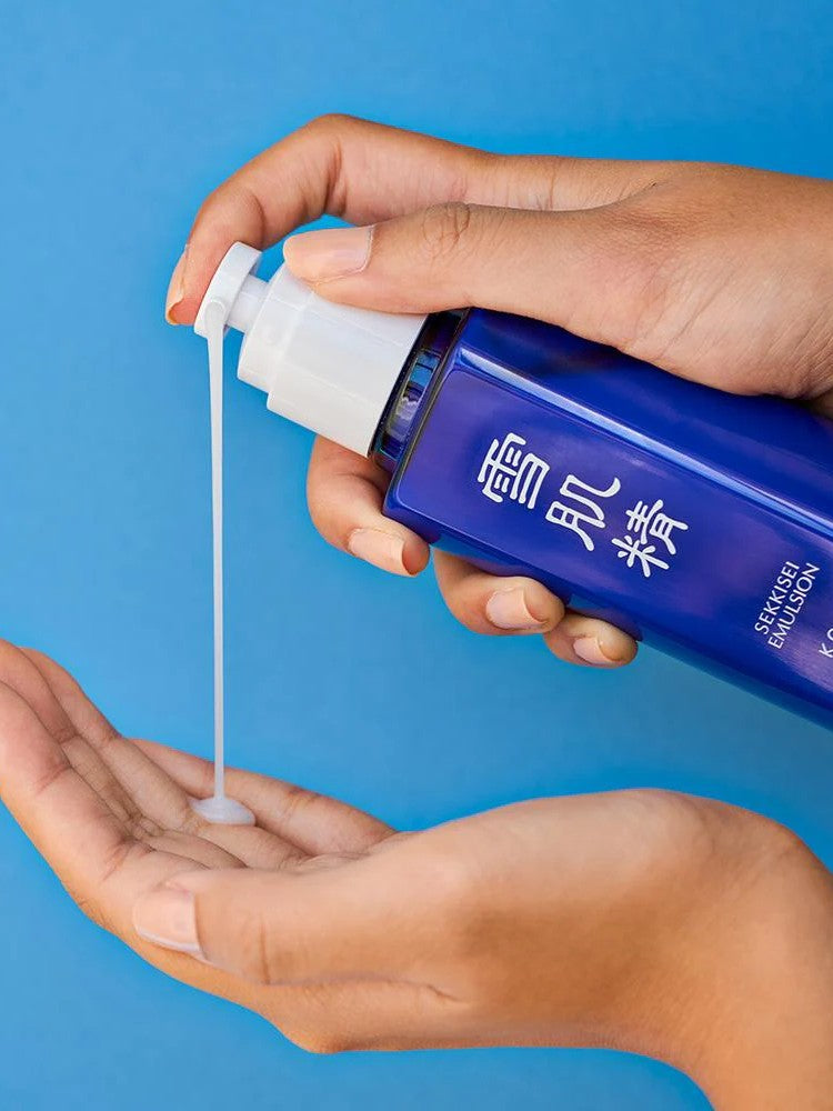 After SEKKISEI lotion, apply 1 or 2 pumps over the skin.