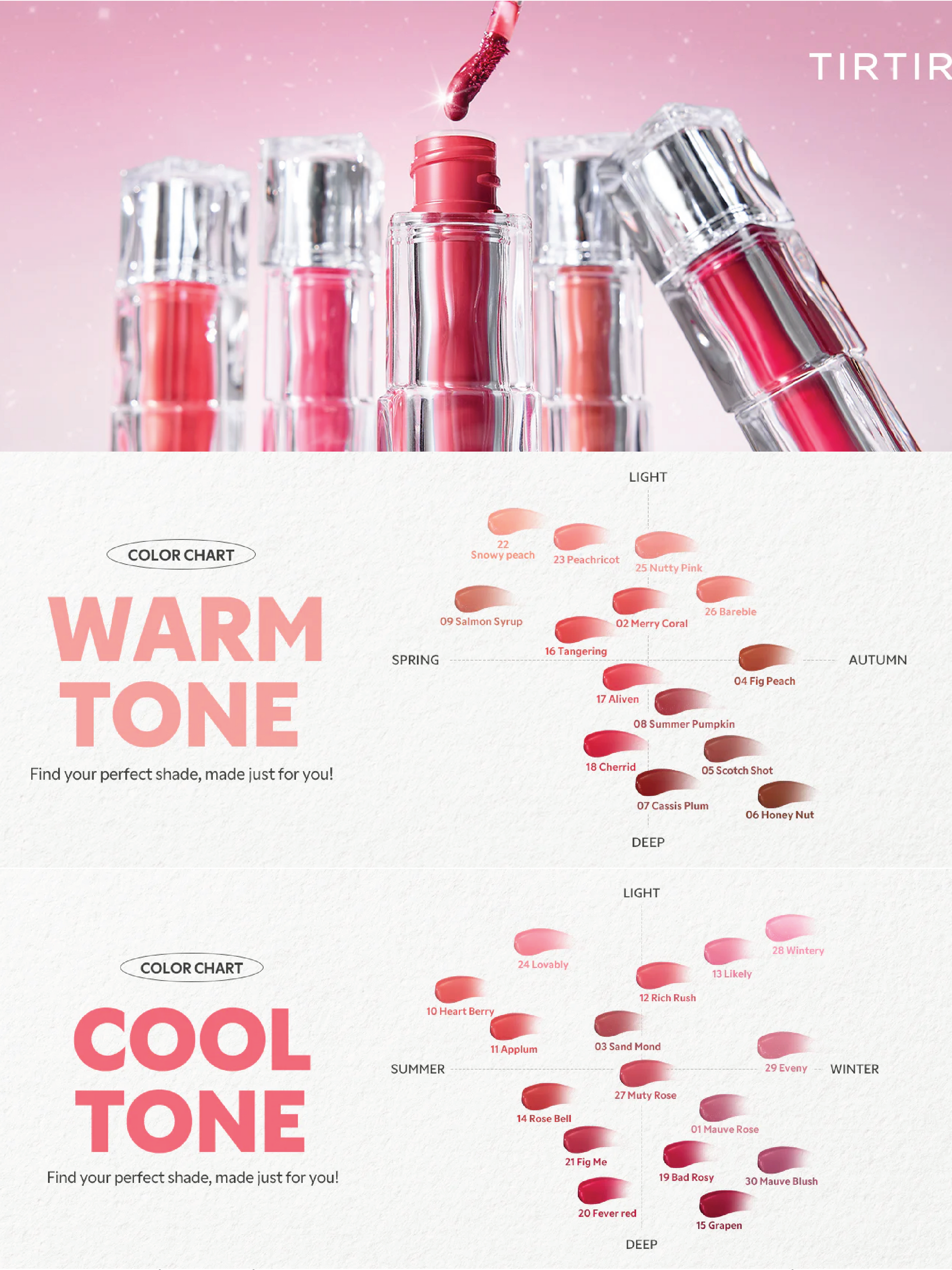 The TIRTIR Waterism Glow Tint combines intense hydration with vibrant color, providing up to 12 hours of moisture to keep lips soft and smooth throughout the day. Its plumping effect enhances lip fullness while delivering a radiant shine that highlights your natural beauty. Available in nine carefully selected natural shades, this lip tint offers a sophisticated finish suitable for any occasion. Ideal for those seeking long-lasting hydration and a luminous look, it ensures your lips remain irresistibly supple and glowing.