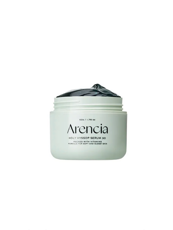 ARENClA Holy Hyssop Serum 30 combines French hyssop extract, Vitamin ACE Complex, and niacinamide to effectively reduce hyperpigmentation and improve skin texture. Enriched with hyaluronic acid, ceramide NP, and panthenol, this jelly-like serum delivers deep hydration while strengthening and soothing the skin barrier. Ideal for those seeking targeted brightening alongside lasting moisture and skin resilience.