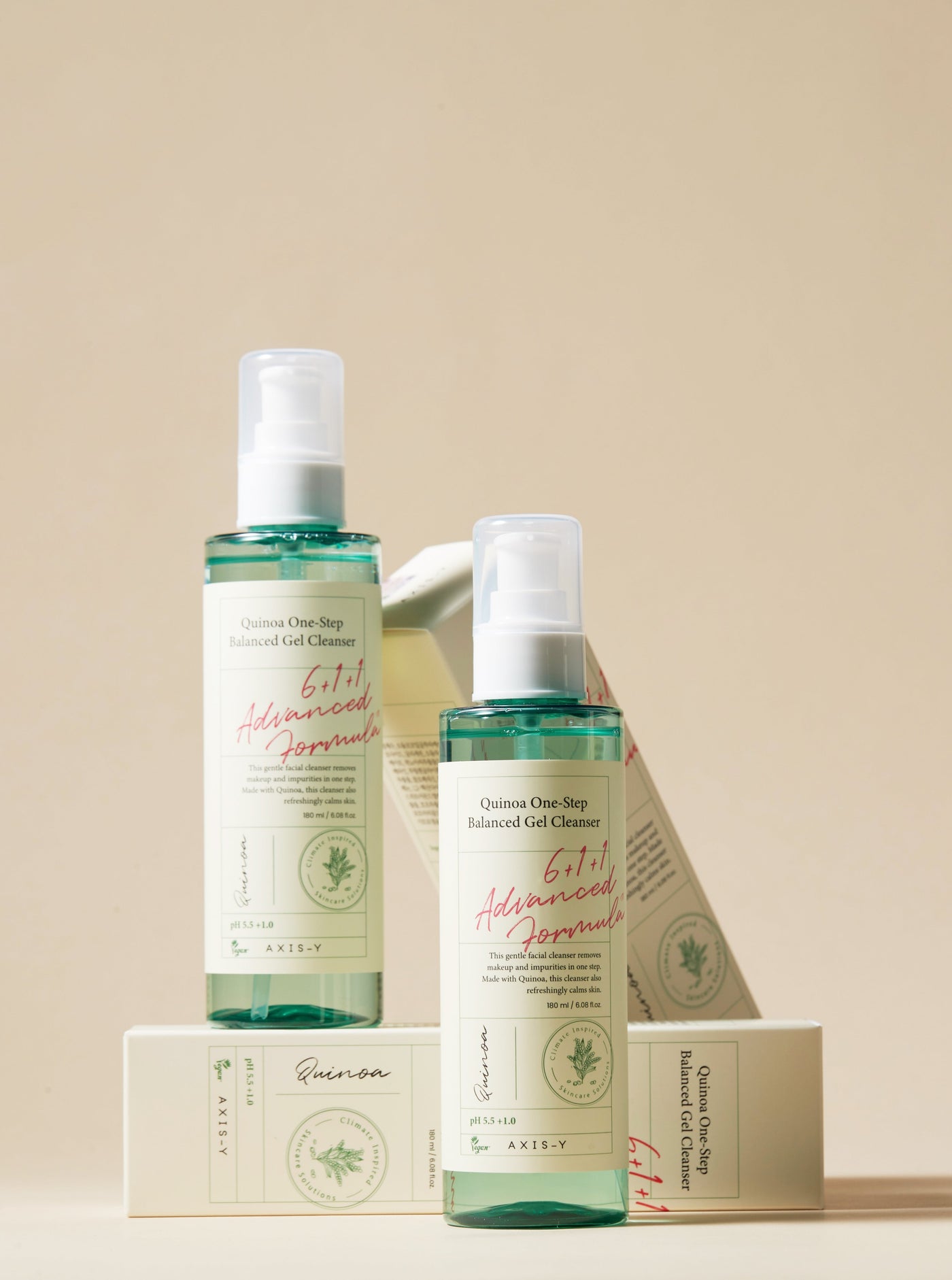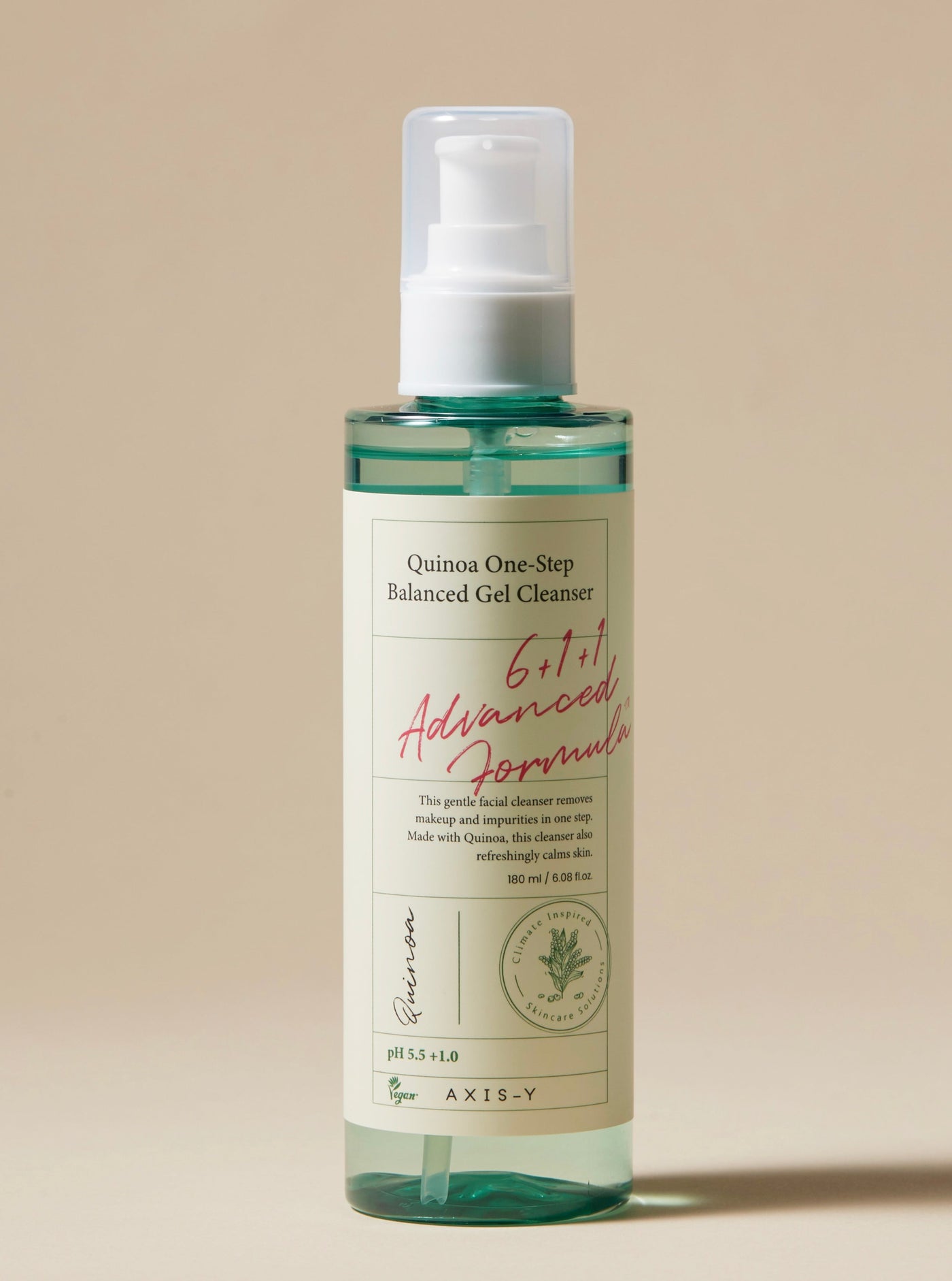 AXISY Quinoa One Step Balanced Gel Cleanser provides gentle, balanced hydration while unclogging pores and removing makeup in one step. It is specially formulated with quinoa and other skin-healthy nutrients to help remove environmental toxins to reveal a healthier and more radiant complexion.