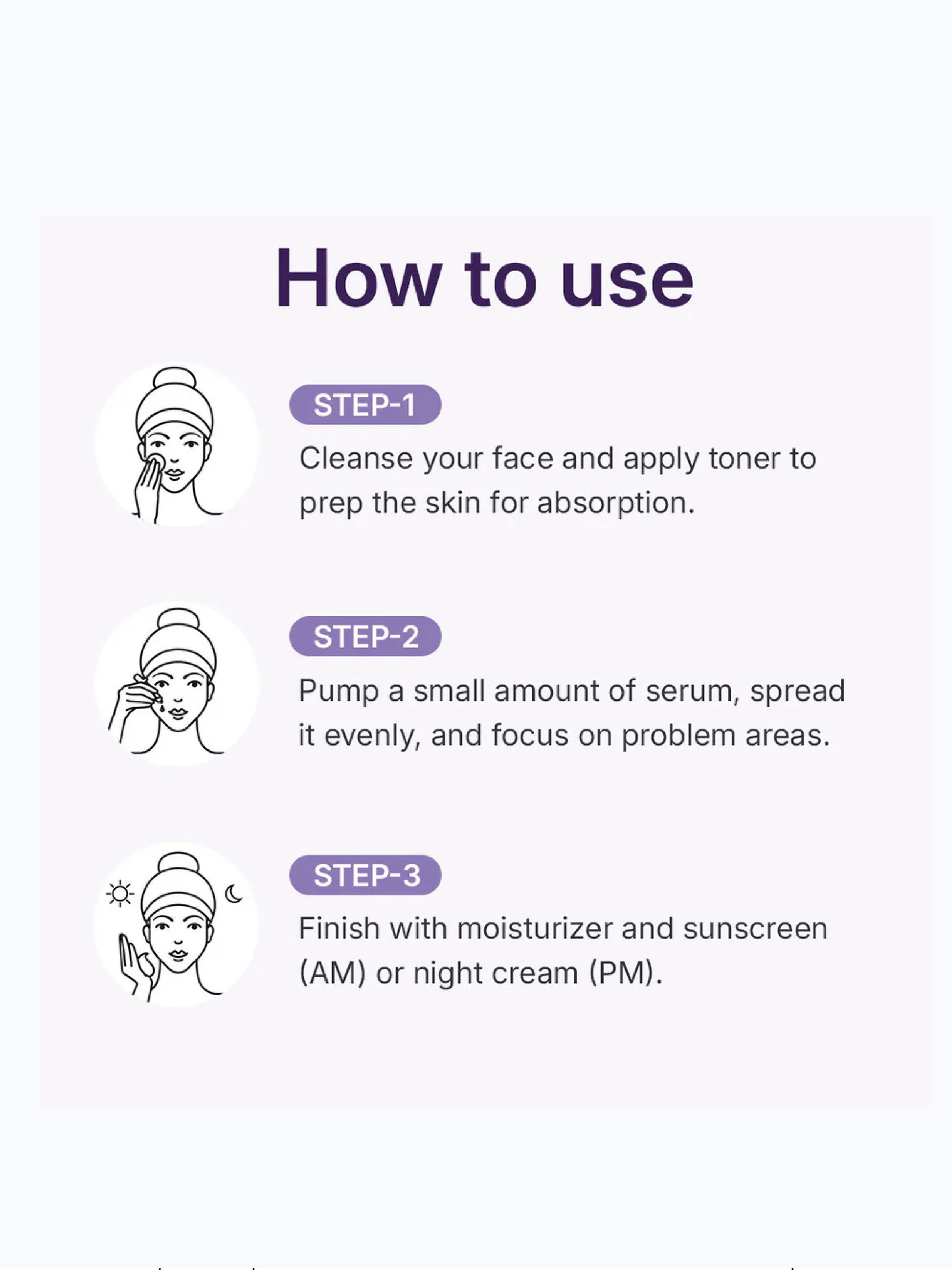 After applying toner in the morning and evening, take an appropriate amount of the product & gently apply it on your skin, following the texture from the inside out.