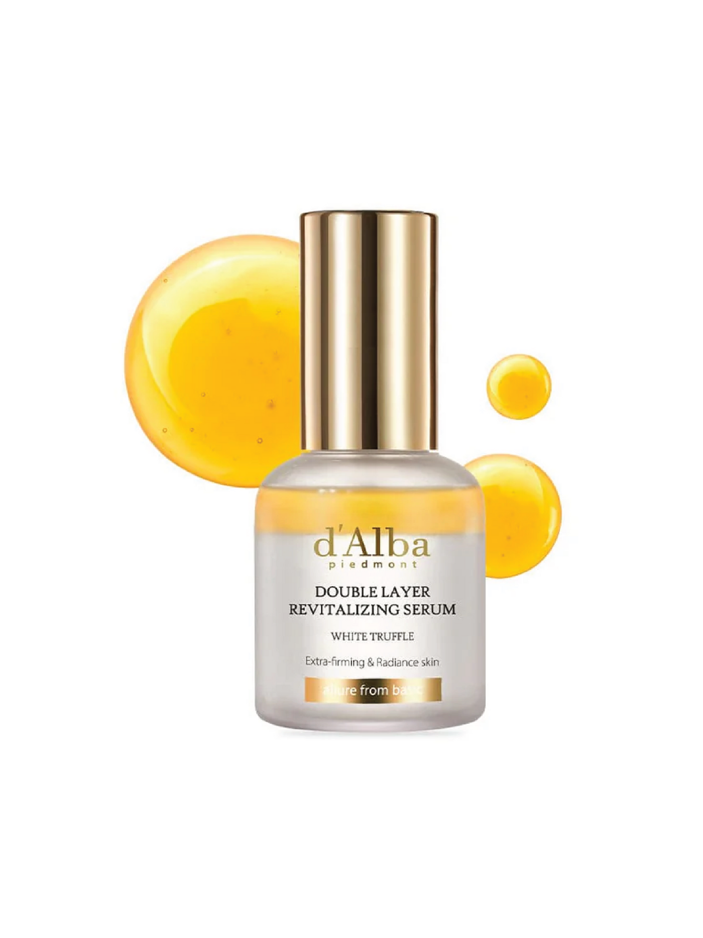 Experience the luxurious power of d'Alba White Truffle Double Layer Revitalizing Serum. Made with premium White Truffles from Piedmont, Italy, carefully extracted and infused with Tocopherol (Vitamin E), our signature ingredient Trufferol is a powerful antioxidant. Reveal smoother, revitalized skin with our scientifically-formulated serum.