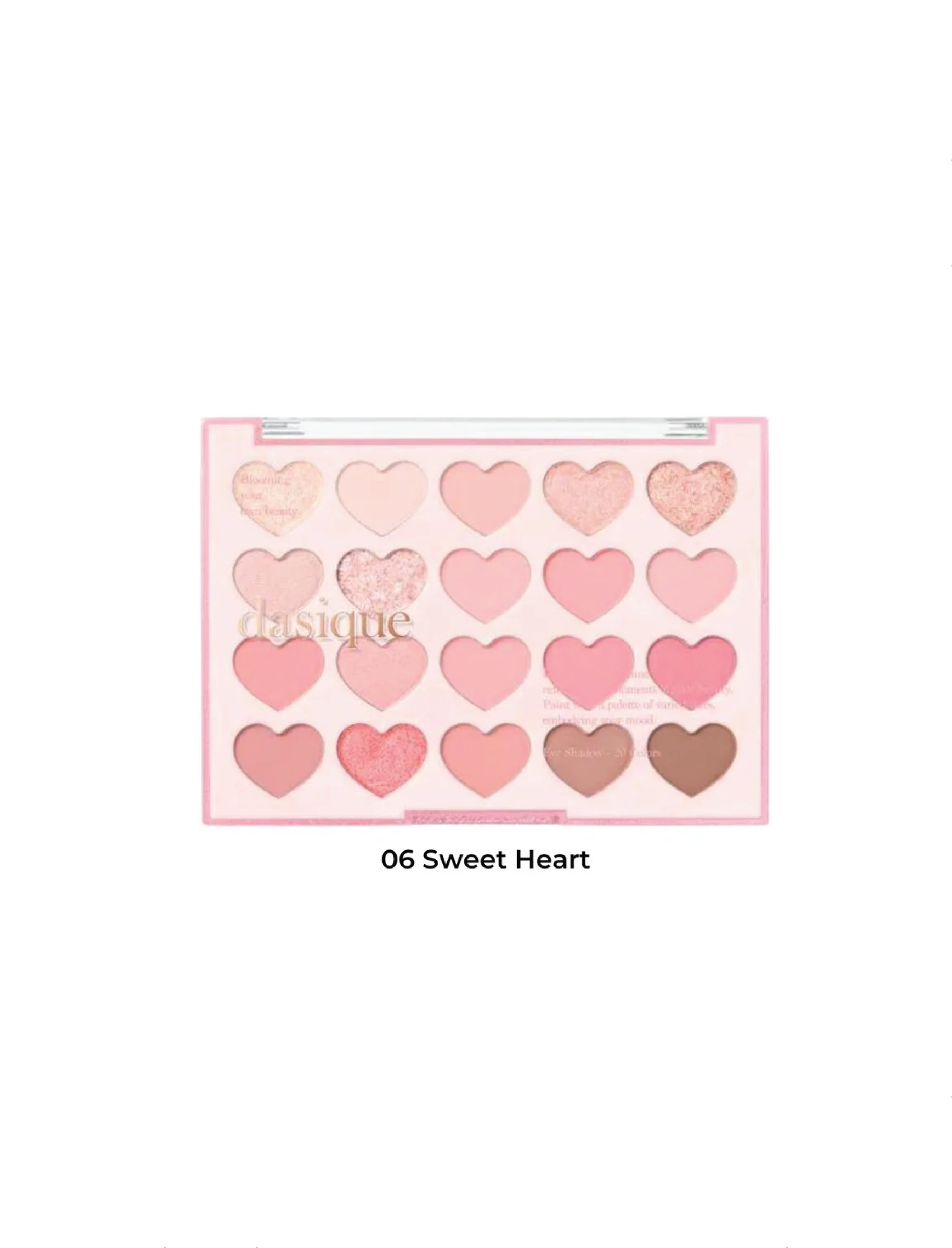 The Sweet Heart Collection's Mood Shadow Palette features 20 shades of sweet warm pinks and romantic cool pinks that allows for a wide range of versatile makeup looks.