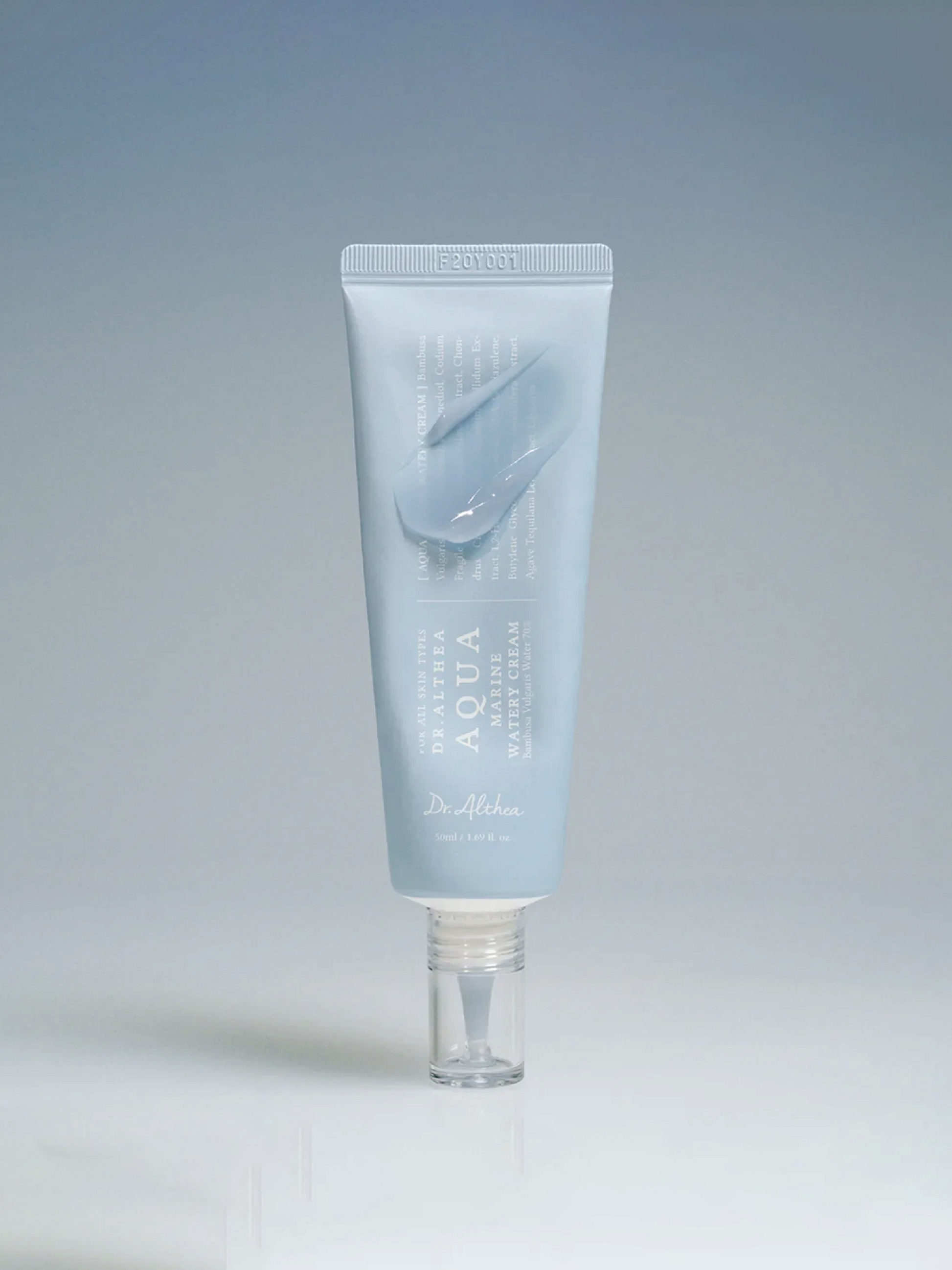 DR ALTHEA Aqua Marine Watery Cream delivers intensive hydration in a lightweight formula designed for visibly parched skin. Infused with 70% bamboo water and a multi-weight hyaluronic acid complex, this 50 mL cream penetrates deeply to restore moisture balance while panthenol strengthens the skin barrier. The result is a smoother, more luminous complexion with renewed vitality. Perfect for addressing dryness, dehydration, and dullness without heaviness.