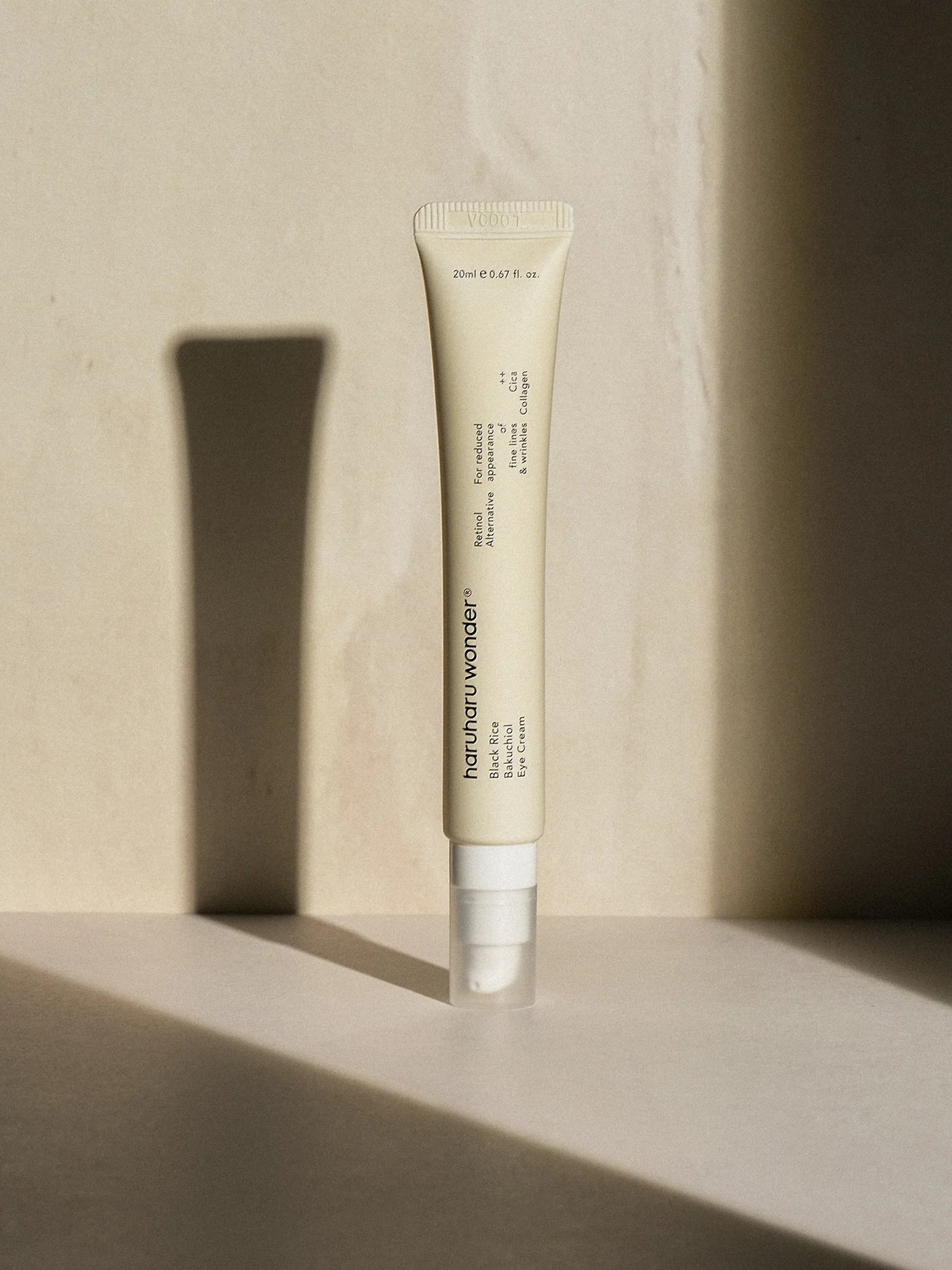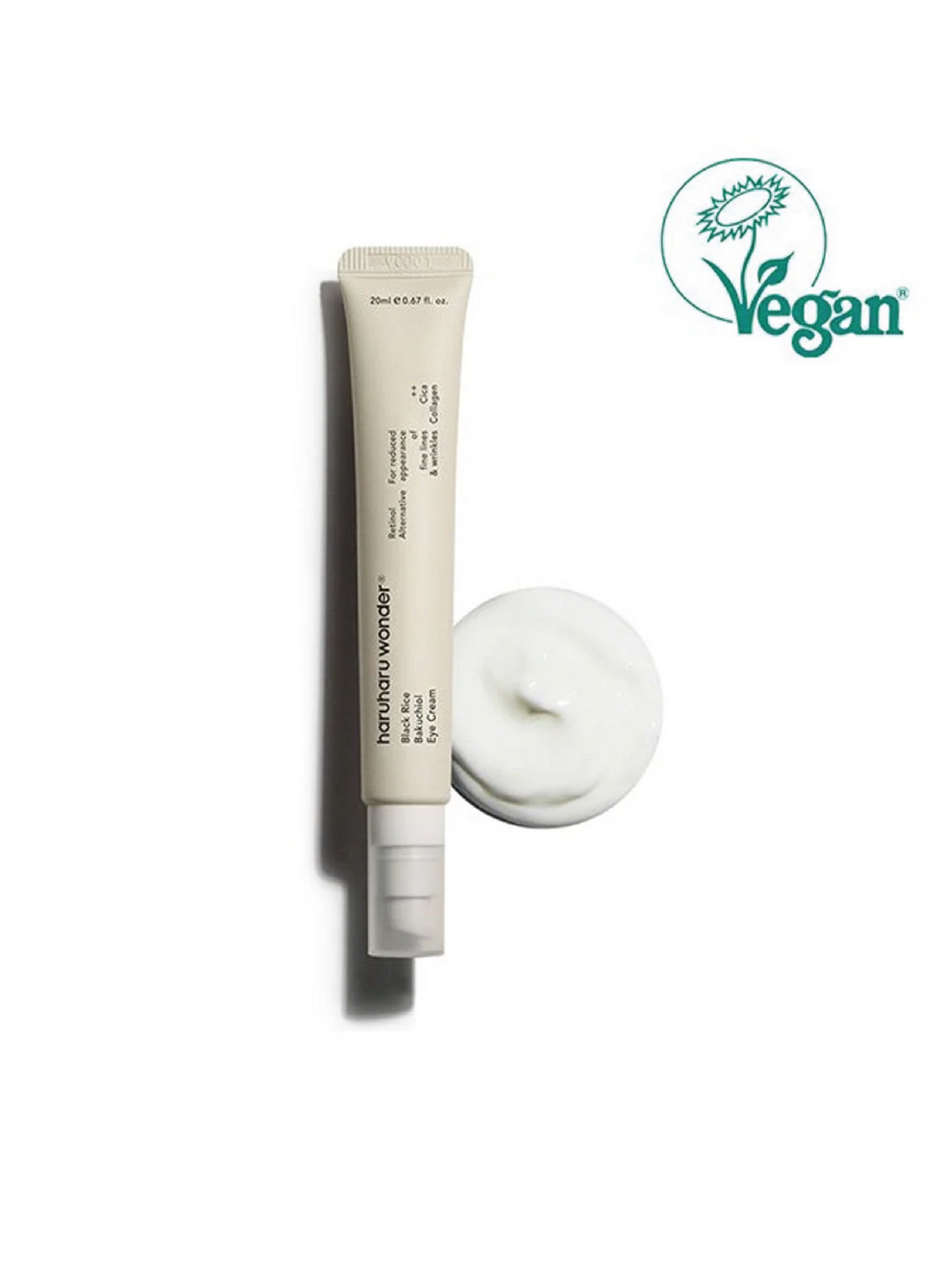 Haruharu Wonder Black Rice Bakuchiol Eye Cream contains fermented Black Rice, Bamboo Shoot Bark extract, and plant-derived Bakuchiol.