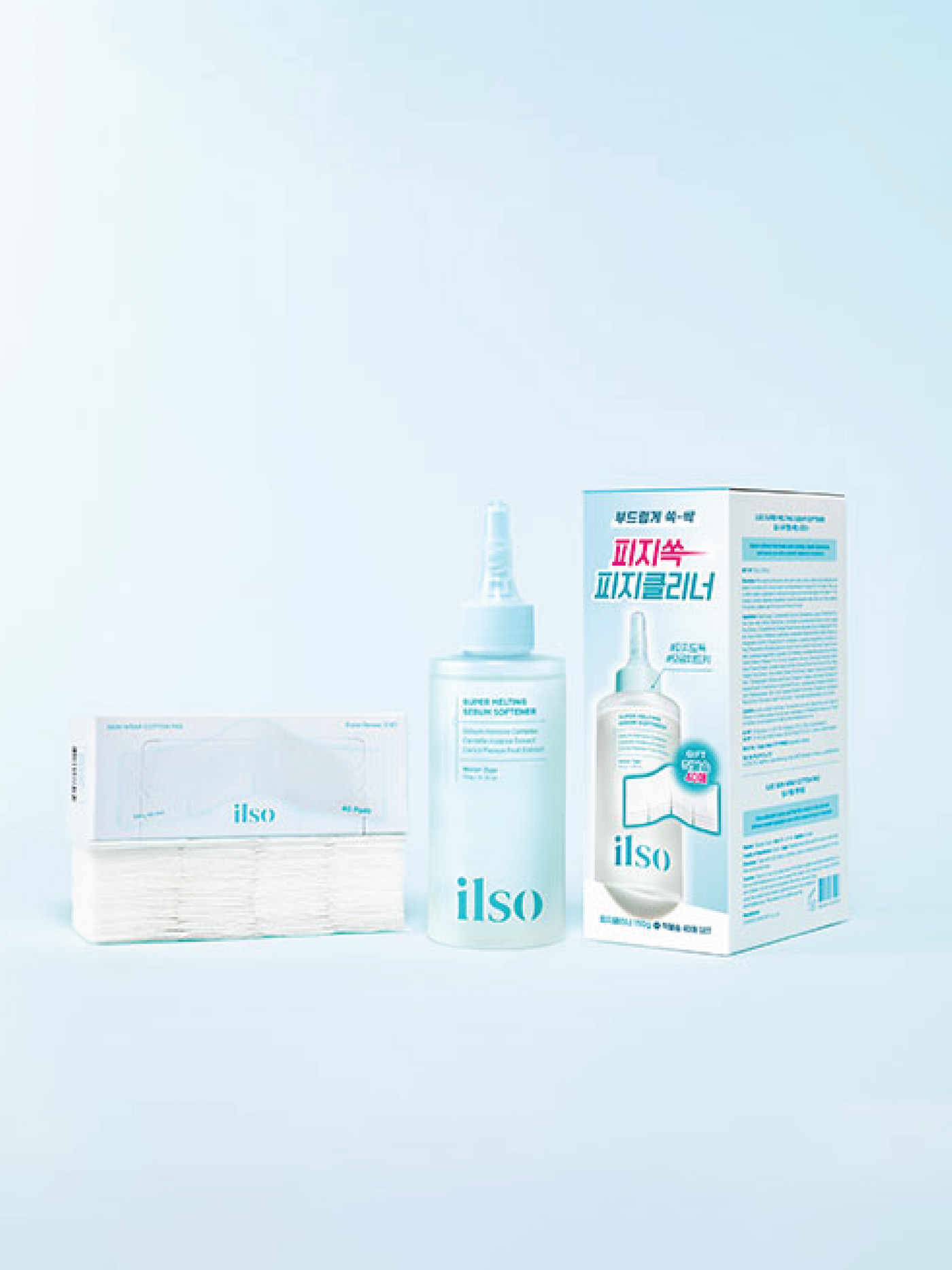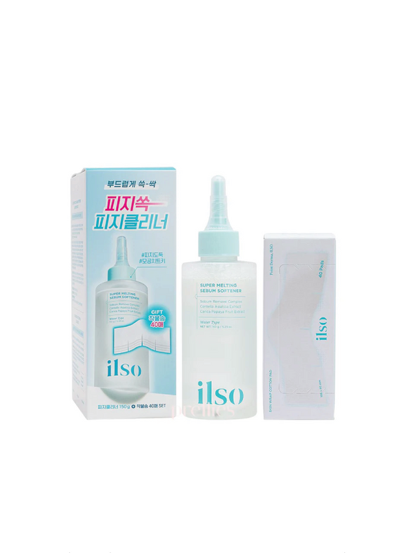 ILSO Super Melting Sebum Softener Set gently dissolves stubborn sebum and blackheads for visibly clearer pores. Featuring the brand's trusted Sebum Remove Complex, this softener works to melt away buildup deep within pores, making extraction effortless and comfortable. Perfect for anyone struggling with congestion, this set delivers the professional-grade results of ILSO's bestselling Natural Mild Clear Nose Pack in an easy-to-use formula. Experience smoother, refined skin with consistent use.