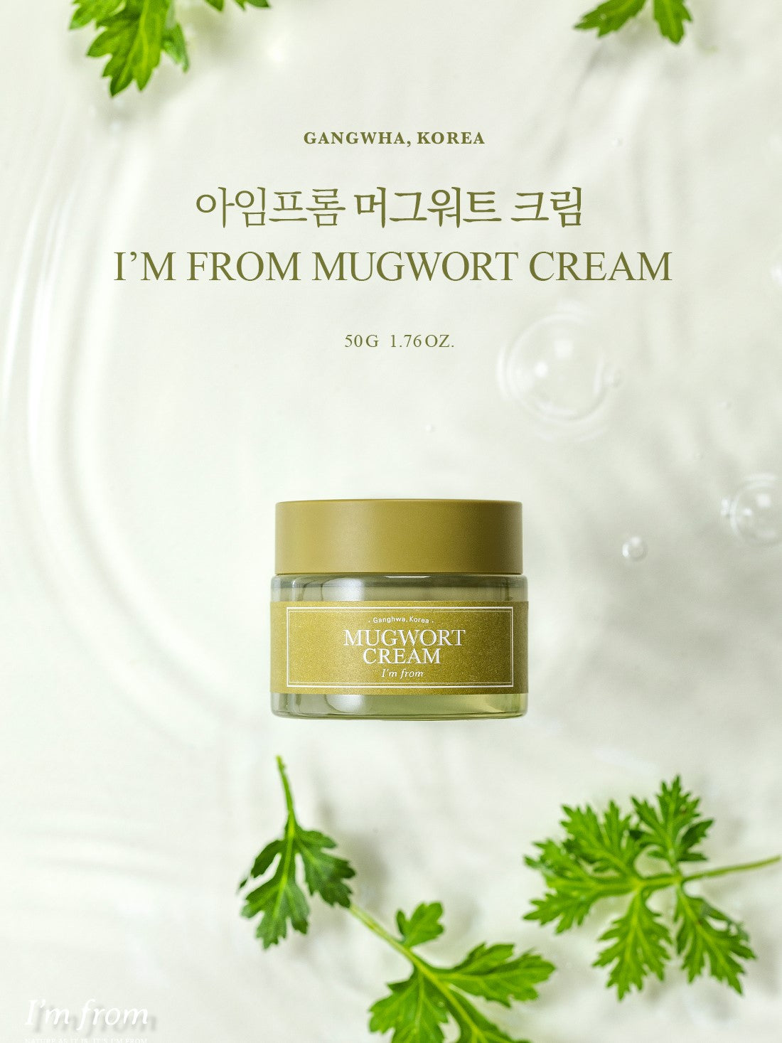 Indulge in deep hydration with I'm From Mugwort Cream. This light and soothing cream quickly absorbs into skin without a sticky residue, delivering 73.55% mugwort extract to nourish dry or troubled skin. Enjoy this calming cream with its subtle herbal scent.