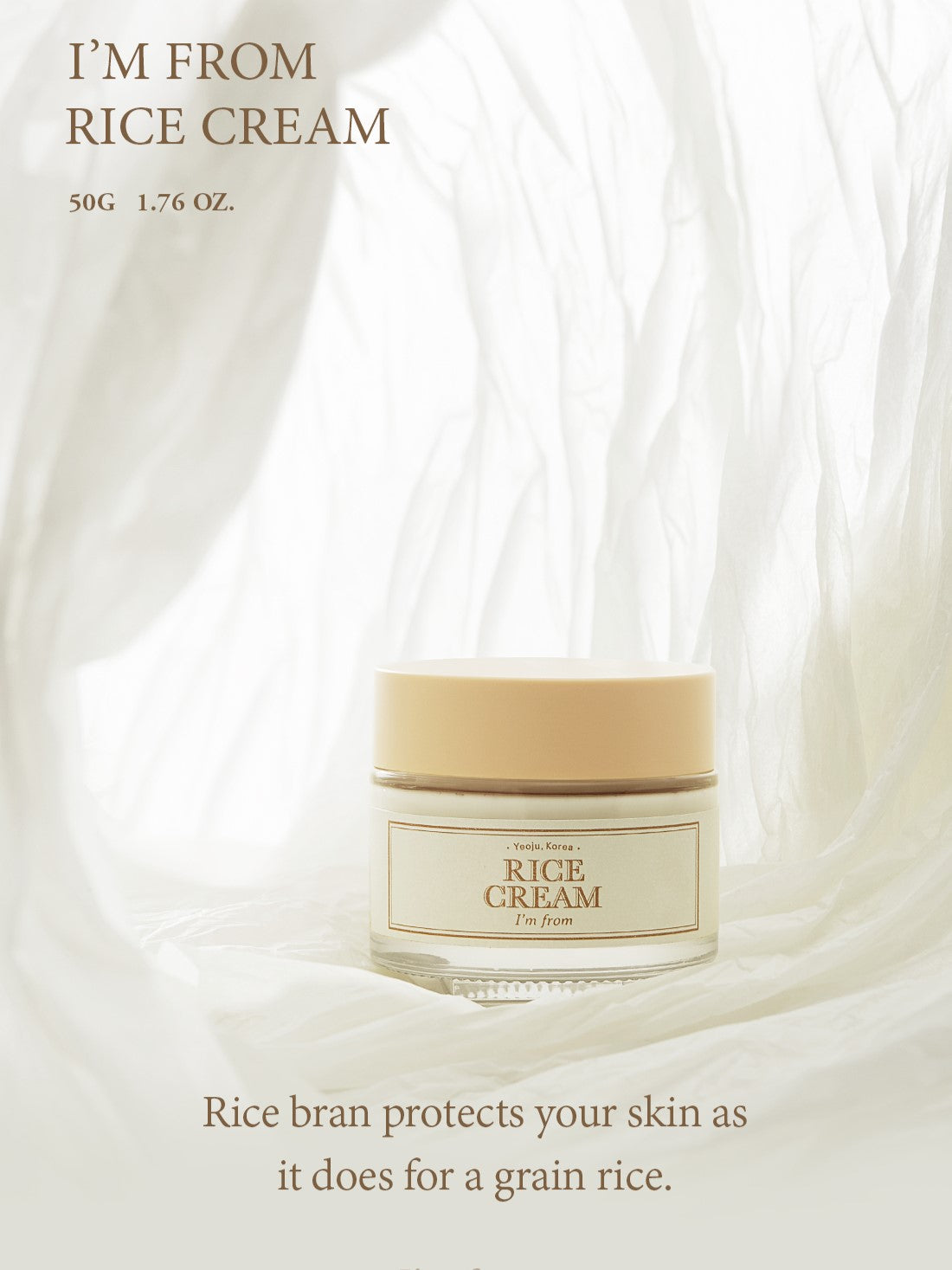 Nourish your complexion with I'm From Rice Cream. This rich cream, made with ancient East Asian skincare ingredient: rice bran water, contains vitamins E and B and ceramides to reinforce your skin's barrier and deep hydration.