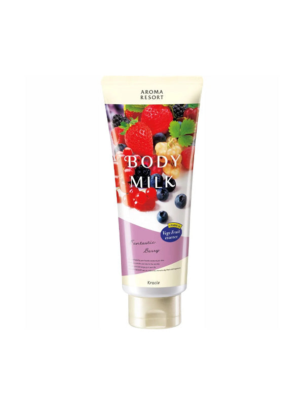 KRACIE Aroma Resort Body Milk is a luxurious body lotion designed to hydrate and nourish the skin. Infused with natural botanical and fruit essences, it provides long-lasting moisture and a soothing, aromatic experience. Available in various delightful scents, this body milk leaves your skin feeling soft, smooth, and enveloped in a pleasant fragrance.