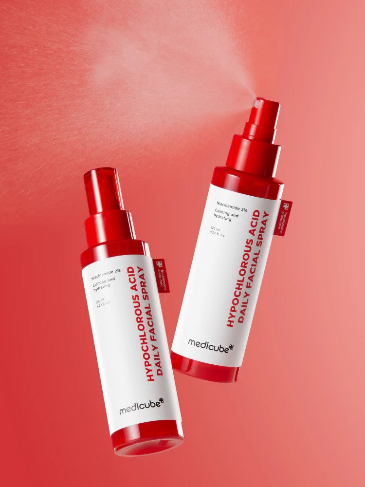 MEDICUBE Hypochlorous Acid Daily Facial Spray delivers a gentle, refreshing mist powered by HOCl technology to support your skin's natural balance. This lightweight formula works to calm visible redness, purify pores, and promote a clearer complexion throughout the day. Perfect for sensitive or reactive skin, it provides soothing relief while maintaining hydration. Simply spritz whenever your skin needs a moment of care—whether at your desk, after workouts, or as part of your evening routine.