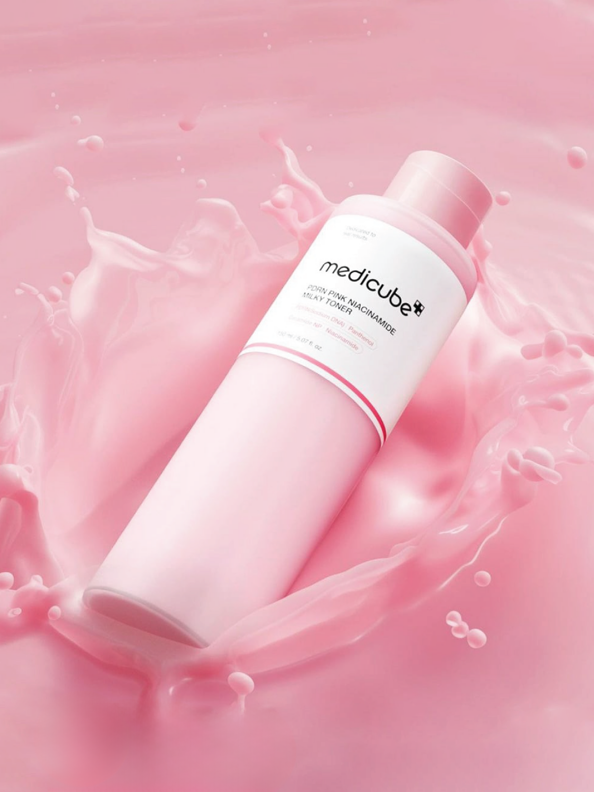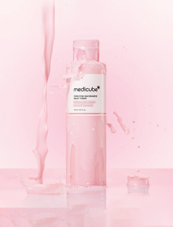 MEDICUBE PDRN Pink Niacinamide Milky Toner delivers advanced hydration through a carefully formulated blend of PDRN and niacinamide. This lightweight milky toner penetrates deeply to replenish moisture while strengthening your skin barrier. Niacinamide works to minimize pores and regulate sebum production, while PDRN promotes cellular renewal for a visibly smoother texture. The result is a refreshed, luminous complexion with improved radiance and clarity. Perfect for all skin types seeking professional-grade hydration and a refined, glowing finish.