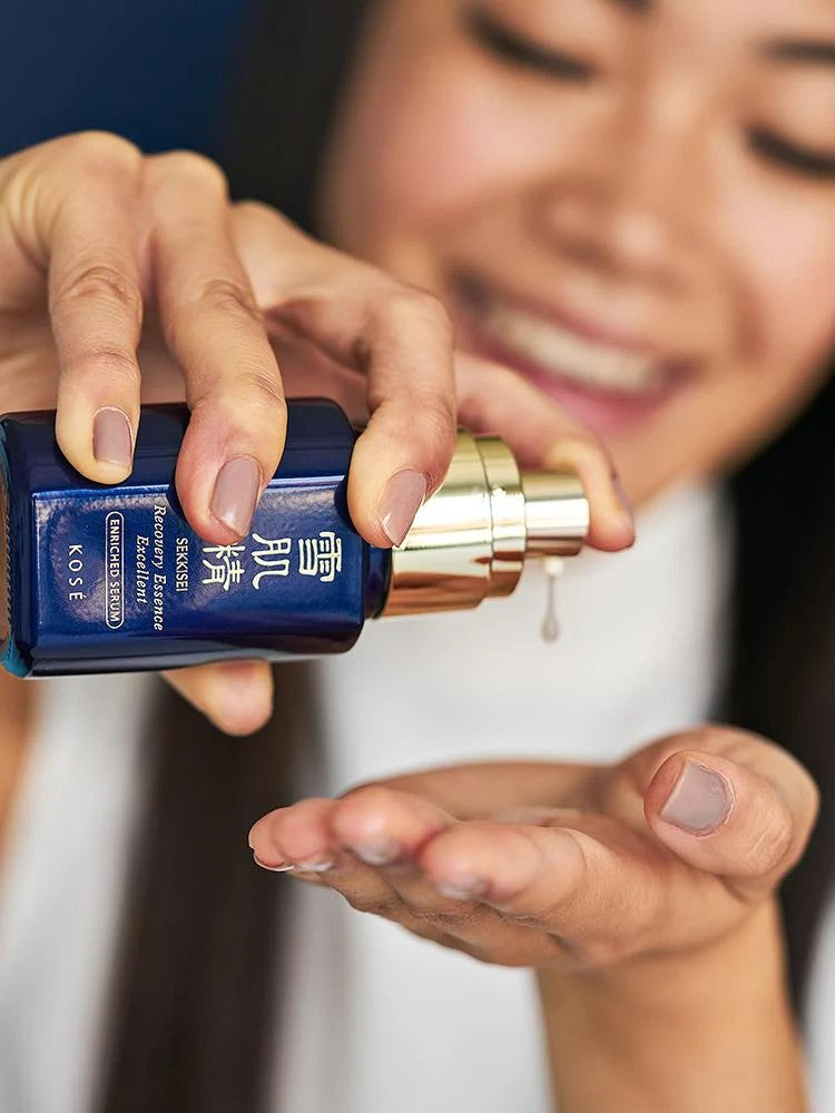 SEKKISEl Recovery Essence Excellent is a brightening serum designed to deeply penetrate the skin, delivering essential moisture to maintain nourishment and hydration. It helps improve skin firmness while reducing the appearance of age spots caused by sun and environmental exposure, promoting a clearer, more youthful complexion.