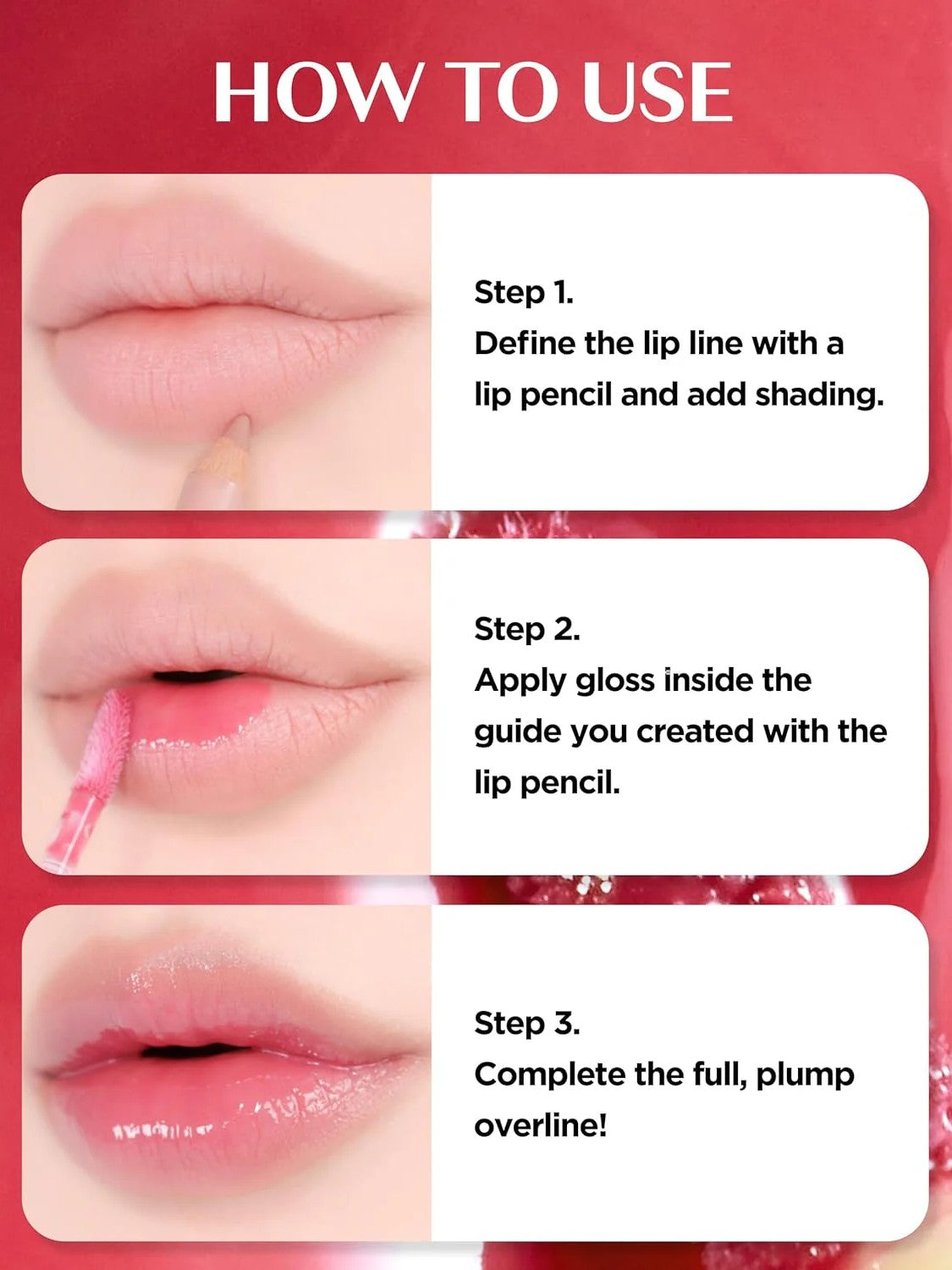 A lip gloss not only provides a glossy coating without stickiness but also helps conceal lip wrinkles and creates a plumping effect.