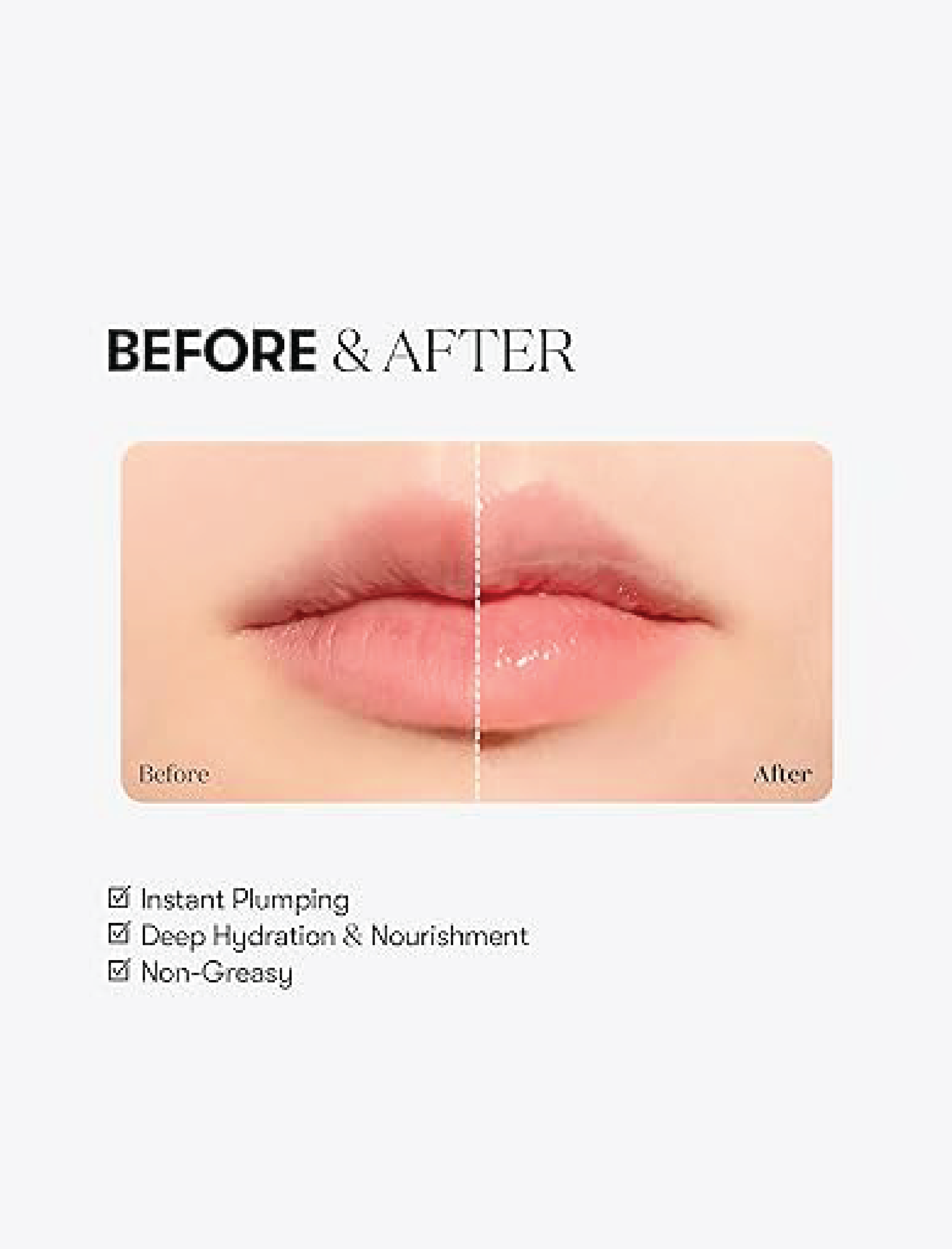 Enriched with CICAHYLON that enhances hydrating effects to help maintain healthy lips, Jojoba oil, vitamin E, and hyaluronic acid deliver additional moisture to the lips. With a transparent gloss texture that creates a glossy look.